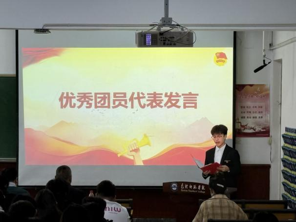新团员代表陈硕在发言中表示,作为一名化学专业学生,将牢记入团初心,在实验室里精益求精,在社会实践中服务群众,努力成长为有理想、敢担当、能吃苦、肯奋斗的新时代共青团员。优秀团员代表桑志远结合社会实践的经历,分享了将专业知识转化为服务社会的生动实践,激励新团员勇攀科学高峰