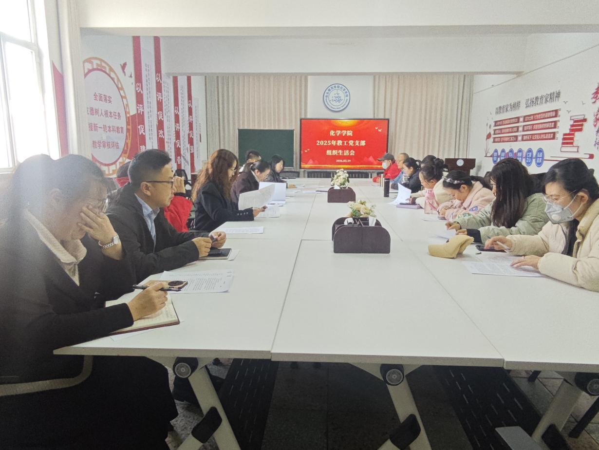 为深入学习贯彻习近平新时代中国特色社会主义思想,全面贯彻落实党的二十届四中全会精神,持续推进作风建设常态化长效化,化学学院教工党支部于2026年3月19日召开了2025年度组织生活会暨民主评议党员大会。全体党员参会。