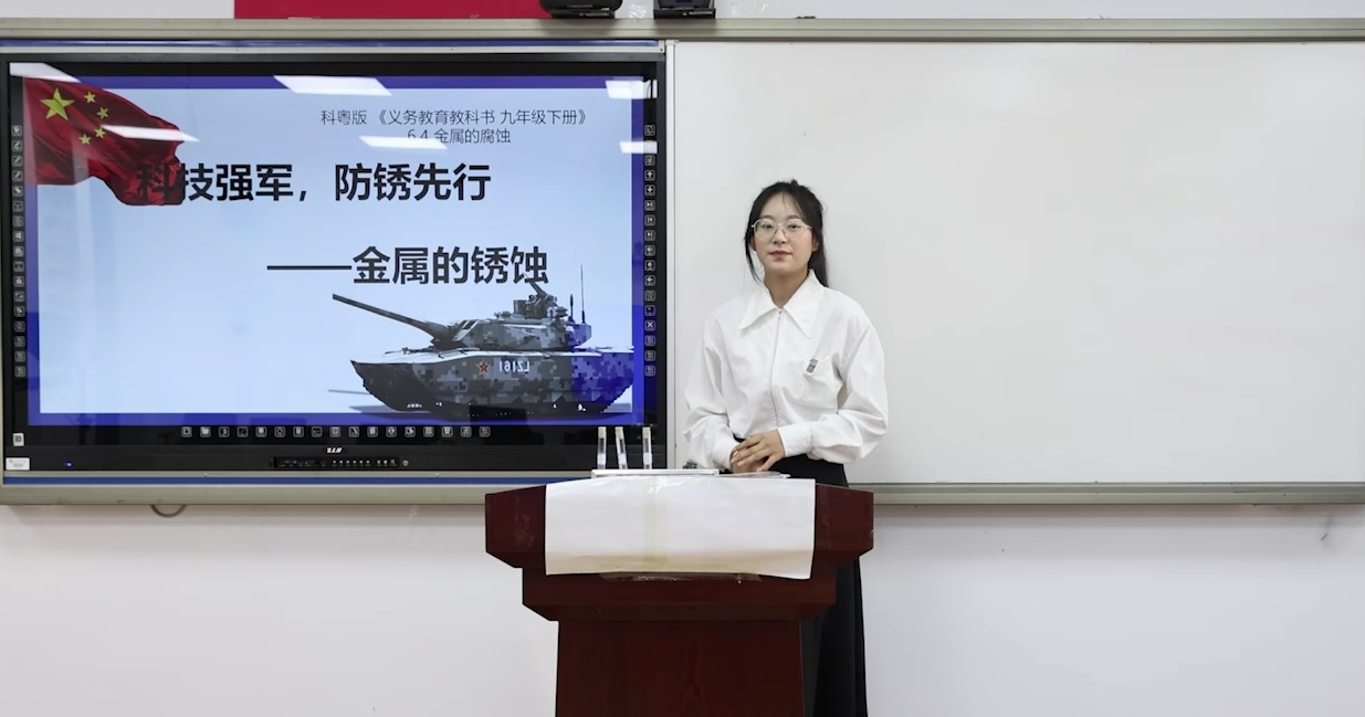 杜芝谐同学历经多轮选拔一路稳步前行。在学院师范生技能竞赛中,斩获二等奖,成功跻身校赛;在校级竞赛理科组比拼中,她以优异表现荣获一等奖,获得代表学校征战“田家炳杯”初赛科学组的资格。备赛期间,杜芝谐同学在连佩利、贾倩南、贺净(校外指导老师)三位老师的悉心指导下,深入研读课程标准,精准把握学科教学重难点,反复打磨教学设计与课件,创新融入九三阅兵情境,运用实验演示等教学方法,最终形成了兼具科学性与趣味性的参赛作品。其教学视频逻辑清晰、互动性强,说课环节紧扣教学实践,凭借出色表现荣获初中学段科学组三等奖,充分展现了化学学院师范生培养的扎实成效。