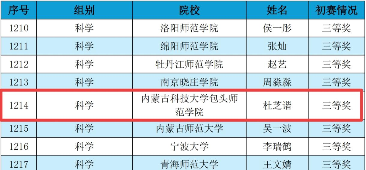 近日,在第十一届“田家炳杯”全国师范院校师范生教学技能竞赛初赛中,我院2023级化学专业学生杜芝谐荣获初中学段科学组全国三等奖,这是我院在此项比赛的新突破。
