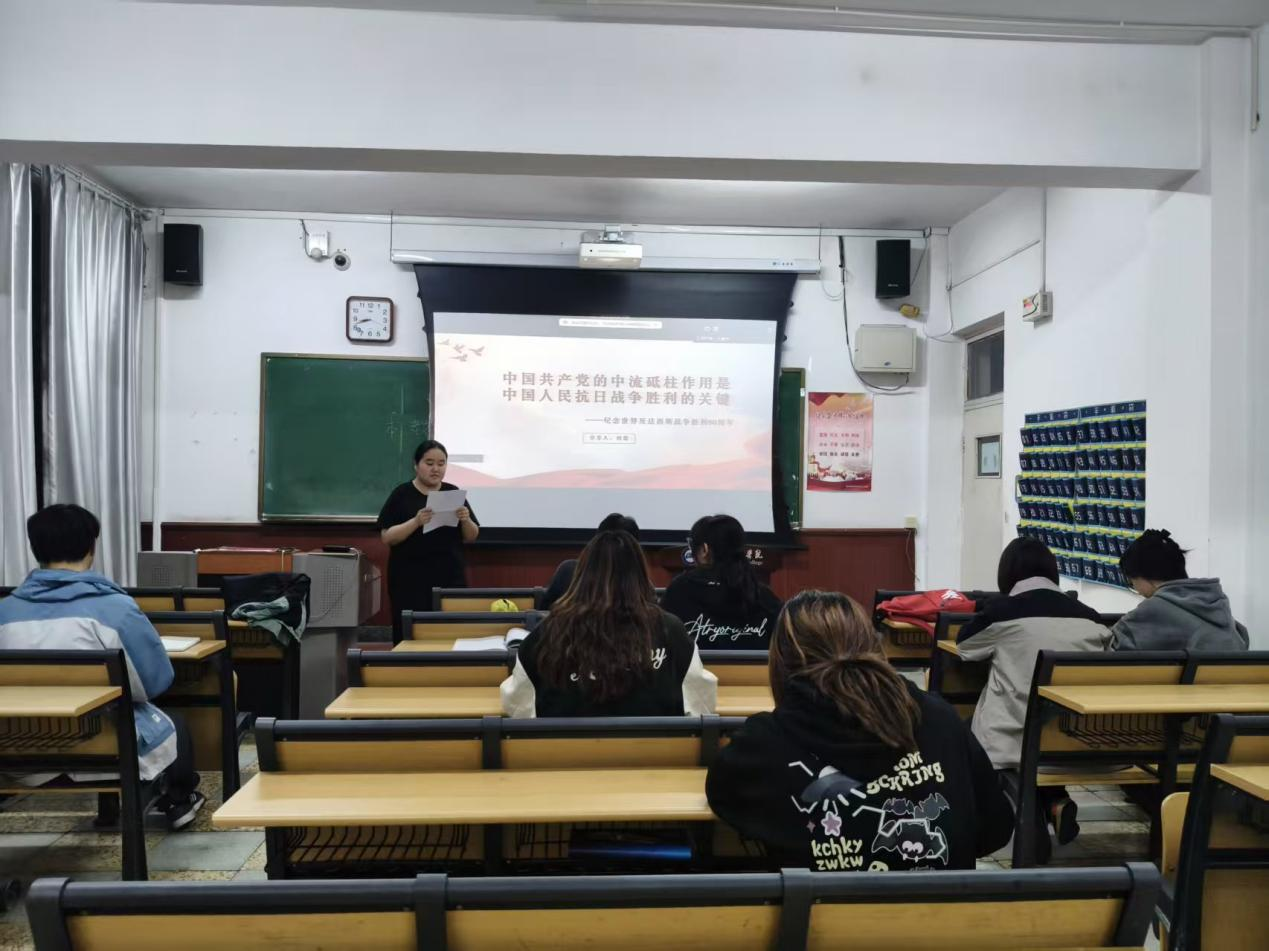 9月23日,刘慧同志开展了题为“中国共产党的中流砥柱作用是中国人民抗日战争胜利的关键”的主题党课,此次党课于齐志楼308拉开帷幕。她指出,中国共产党率先高举抗日旗帜,制定全面抗战路线,提出持久战战略,开辟敌后战场,并加强党的建设,同时积极推动国际反法西斯统一战线。这场伟大胜利不仅是人类正义的胜利,更是中华民族复兴的转折点。作为应用化学专业的学生,我们虽不直接涉足历史战场,但可以专业与科创实践中传承抗战精神,勇于探索化学新领域,用科技力量助力国家发展,将个人的专业成长融入国家复兴的大潮中,为构建更加和平繁荣的世界贡献化学智慧与力量。