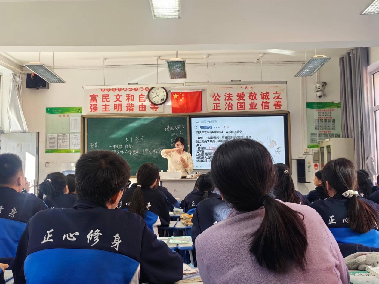在东联中学,走访组一行首先走进课堂,全程聆听了实习生张娟同学的授课。课堂上,张娟同学围绕教学目标精准设计教学环节,通过实验演示、课堂提问等多样化教学方法激发学生兴趣,展现出扎实的专业基础与日渐成熟的教学风采。课后交流中,史继敏老师对张娟的课堂表现给予肯定,他表示:“从学案设计的细节到课堂节奏的把控,都能看到实习生的用心与进步,这样的实践机会对师范生成长至关重要。”张骁勇院长则代表学院,对东联中学为实习生提供宝贵锻炼平台及指导教师的悉心培育表达了诚挚感谢。